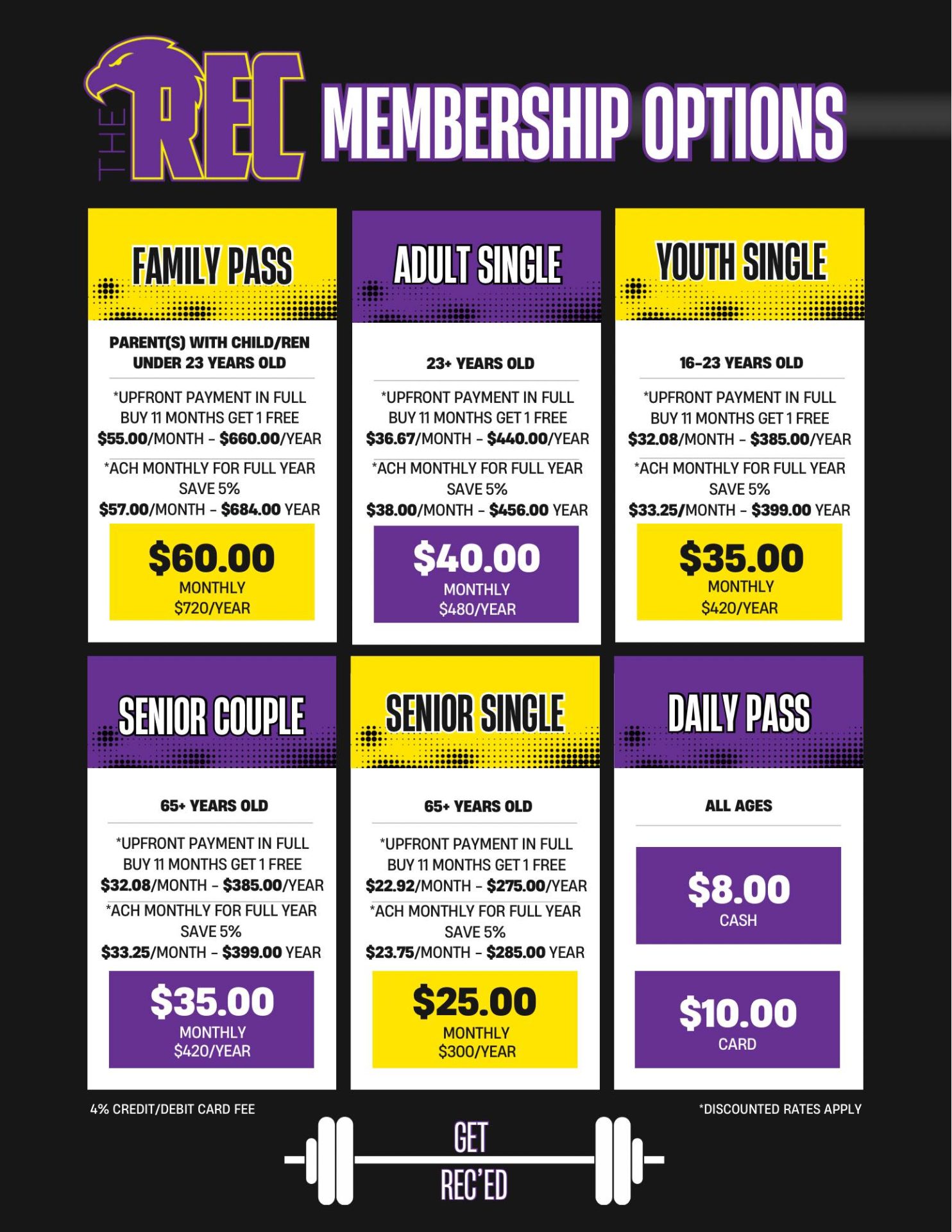 Seniors (65+) can access discounted plans: $35 monthly or $420 annually for couples, and just $25 monthly or $300 per year for individuals. Members can save even more with an upfront annual payment (buy 11 months, get one free) or a 5% discount for paying monthly via ACH. For occasional users, daily passes are available at $8 with cash or $10 by card.