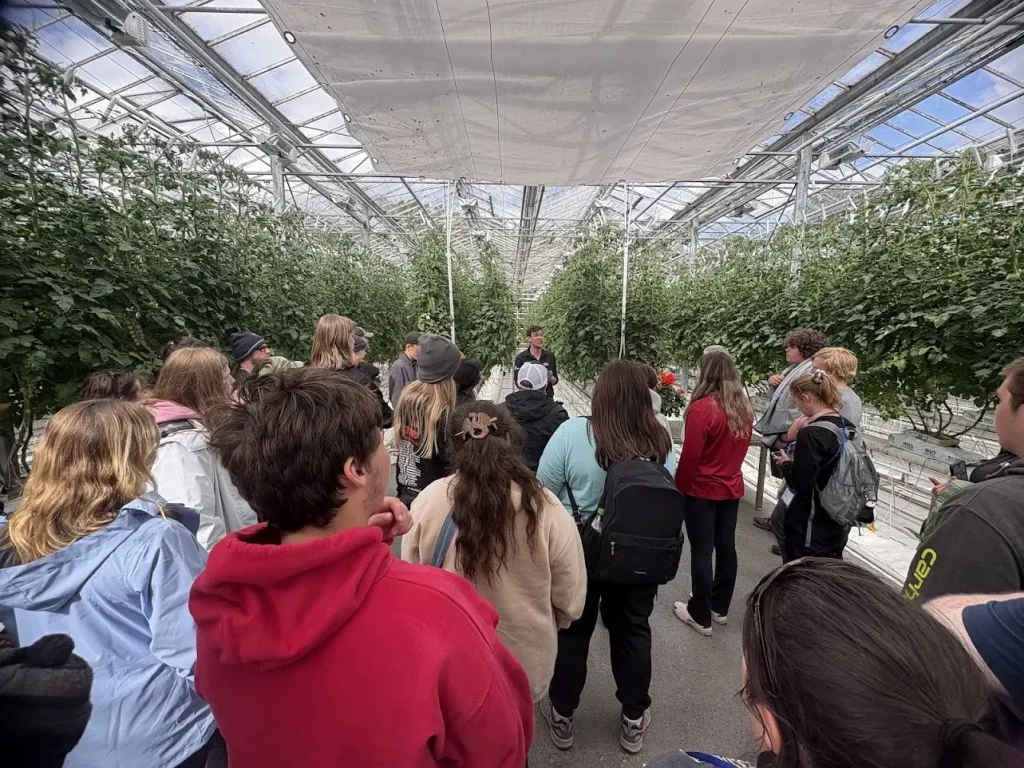 At the Fridheimar tomato greenhouse, students explored hydroponic farming powered by geothermal heat and artificial light despite Iceland’s frigid climate. They made connections of similarities and differences in agriculture in Iowa compared to Iceland.