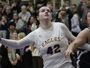 Belmond-Klemme still trailed by six after three quarters, but Edwards went on a personal 9-0 run with three triples and a pair of steals in the fourth. After some “oohs” and “ahs” from the crowd and another Myka Anderson triple, the Eagles conquered the Broncos, 43-27.