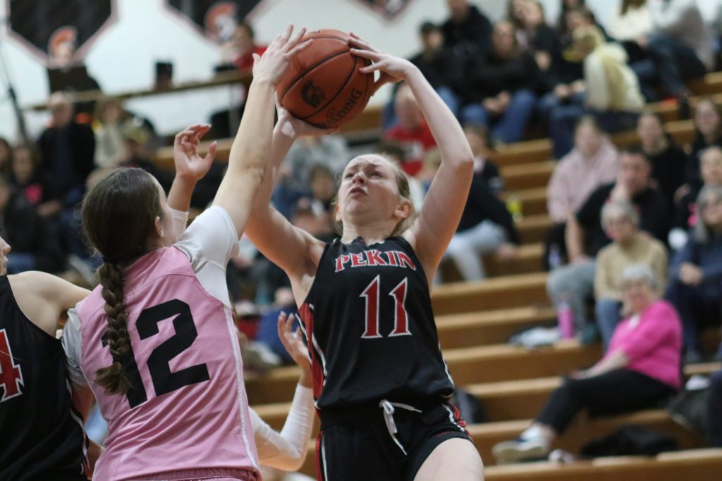 “We started to take our time breaking the press in the second quarter,” said Neil Hartz, the head coach for the Pekin girls basketball team. “We tried to rush too fast into things in the first quarter, but once we slowed things down in the second quarter, we never really had a problem with it. The girls have come a long way in breaking the defense. I think if we would have seen that same pressure in December, we wouldn’t have been able to break it as easily.”
