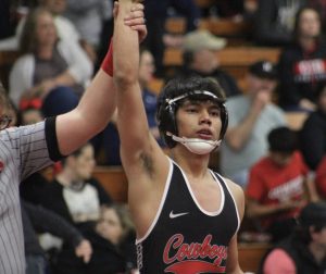 On Thursday night against Clear Lake, Cole Wibholm (106-pounds), Paxton Redenius (113), and Estuardo Lopez (120) all recorded tech falls to give CGD a 15-0 lead.  Then, Angel Cortes pinned his opponent in just 25 seconds, and CGD won the next three straight weights via forfeit.