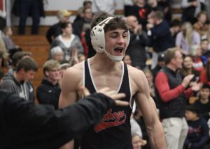 “We started off hot with Cole Wibholm upsetting the 8th ranked wrestler, followed by a decision from Estuardo Lopez, and then falls by Paxton Redenius and Adrian Phetxoumphone that put us up, 19-0.  Decorah stormed back with four straight wins to take a 21-19 lead.  Colin Sesker and Ryland Morgan put us back ahead 26-21, then Decorah put the meet away with three big wins.  JT Kelso finished the meet off with a win, but Decorah prevailed, 38-32.  We had our chances to win the meet, and we just didn’t get the job done today.  We will get back to work and hopefully see them down the road at state duals.  It was a great dual meet, and the excitement in the gym was amazing from both teams.”