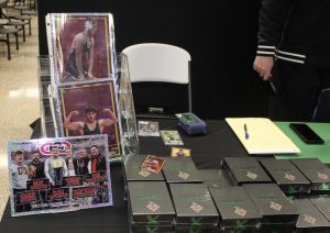 Flex Trading Cards set up a booth at last week’s home wrestling quad. (Photo by Taylor Smith)